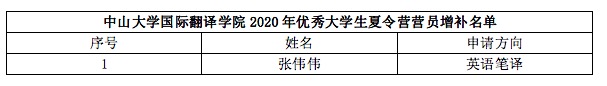 据悉,中山大学国际翻译学院关于2020年优秀大学生夏令营增补入营名单的通知已公布,聚创中山大学考研网小编为大家整理如下: