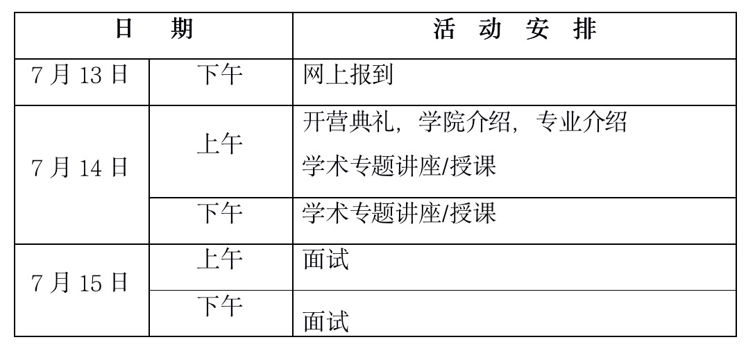 经审核录取的同学请按照日程安排的要求,按时线上报到并全称参加夏令营活动。如因特殊情况不能参加本次夏令营,请于2020年7月9日前邮件告知。