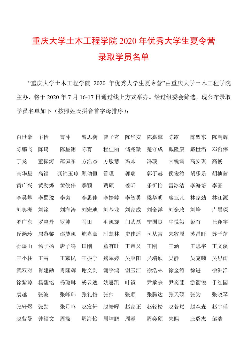 重庆大学土木工程学院2020年优秀大学生夏令营录取学员名单.pdf