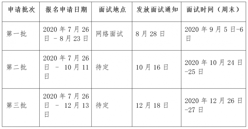 3.如获得面试资格的申请人面试当天无故缺席,将视作自动放弃申请,当年的申请将不再被受理。如因网络技术故障或其他客观原因导致无法参加该批次面试,可申请参加下一批次面试。