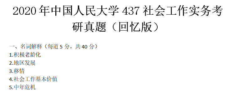 完整版请下载附件:2020年中国人民大学437社会工作实务考研真题(回忆版)