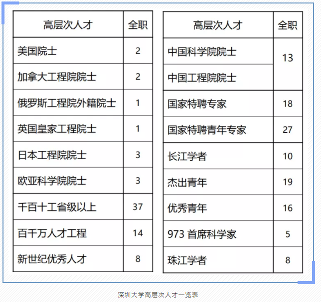 深圳大学现有高层次人才253人,师资队伍整体竞争力和发展潜力居全国地方高校前列。