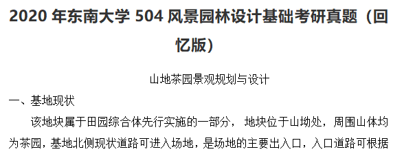 完整版请下载附件:2020年东南大学504风景园林设计基础考研真题(回忆版)