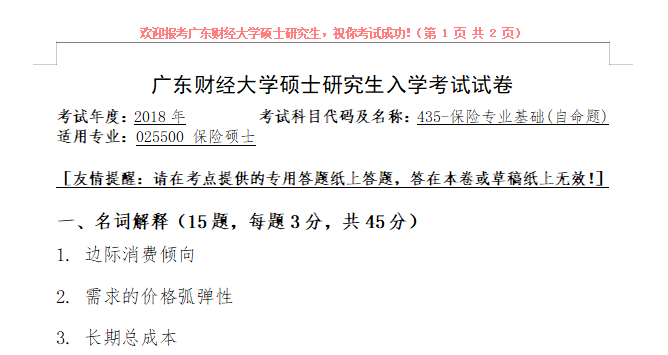 以上是聚创考研网为考生整理的"2018年广东财经大学435保险专业基础考研真题(完整版)"的相关考研信息,希望对大家考研备考有所帮助! 备考过程中如有疑问,也可以添加老师微信juchuang911进行咨询。