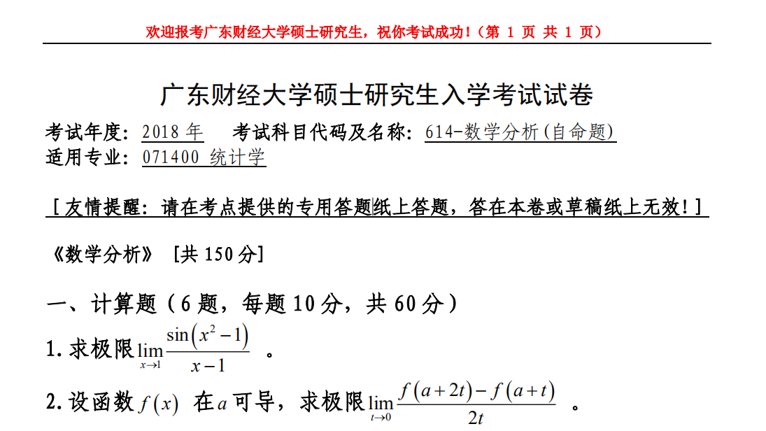 完整版请下载附件:2018年广东财经大学601数学分析考研真题(完整版)