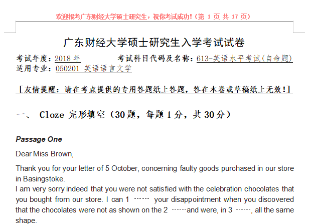 完整版请下载附件:2018年广东财经大学613英语水平考试考研真题(完整版)