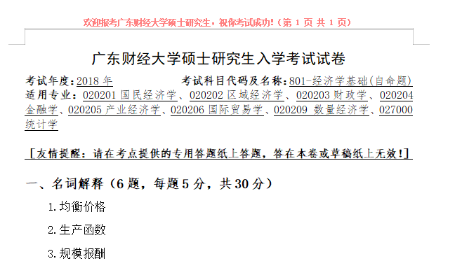 完整版请下载附件:2018年广东财经大学801经济学基础考研真题(完整版)