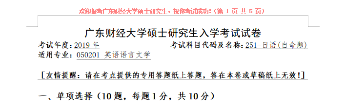 完整版请下载附件:2019年广东财经大学251日语考研真题(完整版)