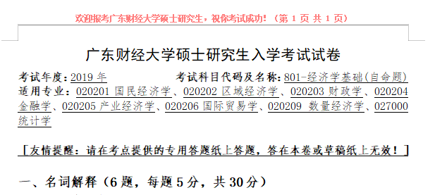 考研学习中,专业课占的分值较大。报考院校专业的考研专业课真题是专业课复习中必不可少的资料。聚创广东财经大学考研小编为大家整理了2019年广东财经大学801经济学基础考研真题(完整版),并且可以提供广东财经大学考研专业课辅导,希望更多考生能够在专业课上赢得高分,升入理想的院校。
