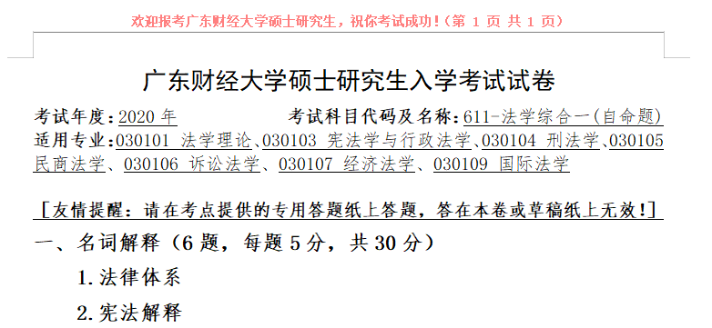 完整版请下载附件:2020年广东财经大学611法学综合一考研真题(完整版)