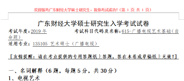 完整版请下载附件:2019年广东财经大学615广播电视艺术基础考研真题(完整版)