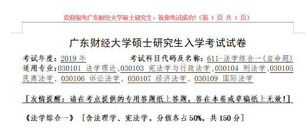 完整版请下载附件:2019年广东财经大学611法学综合一考研真题(完整版)
