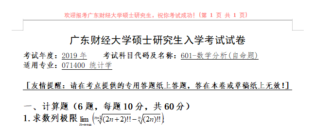 完整版请下载附件:2019年广东财经大学601数学分析考研真题(完整版)