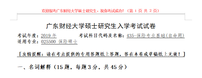 考研学习中,专业课占的分值较大。报考院校专业的考研专业课真题是专业课复习中必不可少的资料。聚创广东财经大学考研小编为大家整理了2019年广东财经大学435保险专业基础考研真题(完整版),并且可以提供广东财经大学考研专业课辅导,希望更多考生能够在专业课上赢得高分,升入理想的院校。