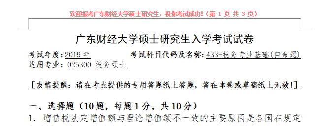 考研学习中,专业课占的分值较大。报考院校专业的考研专业课真题是专业课复习中必不可少的资料。聚创广东财经大学考研小编为大家整理了2019年广东财经大学433税务专业基础考研真题(完整版),并且可以提供广东财经大学考研专业课辅导,希望更多考生能够在专业课上赢得高分,升入理想的院校。