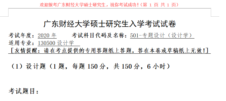 完整版请下载附件:2020年广东财经大学501专题设计(设计学)考研真题(完整版)