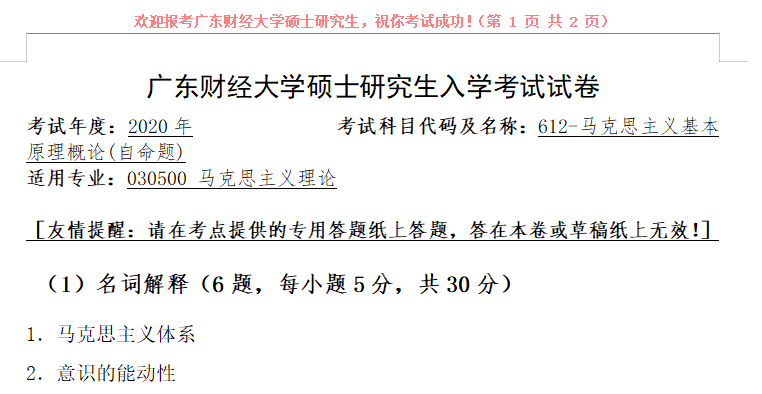 考研学习中,专业课占的分值较大。报考院校专业的考研专业课真题是专业课复习中必不可少的资料。聚创广东财经大学考研小编为大家整理了2020年广东财经大学612马克思主义基本原理概论考研真题(完整版),并且可以提供广东财经大学考研专业课辅导,希望更多考生能够在专业课上赢得高分,升入理想的院校。