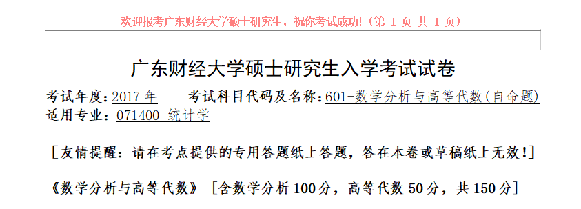 完整版请下载附件:2017年广东财经大学601数学分析与高等代数考研真题(完整版)