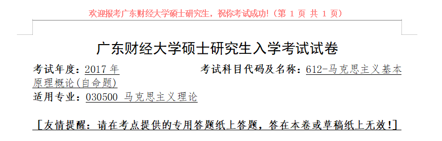 考研学习中,专业课占的分值较大。报考院校专业的考研专业课真题是专业课复习中必不可少的资料。聚创广东财经大学考研小编为大家整理了2017年广东财经大学612马克思主义基本原理概论考研真题(完整版),并且可以提供广东财经大学考研专业课辅导,希望更多考生能够在专业课上赢得高分,升入理想的院校。