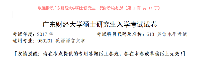 完整版请下载附件:2017年广东财经大学613英语水平考试考研真题(完整版)