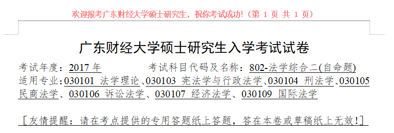 完整版请下载附件:2017年广东财经大学802法学综合二考研真题(完整版)