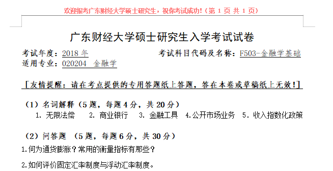 完整版请下载附件:2018年广东财经大学F503金融学基础考研真题(复试)