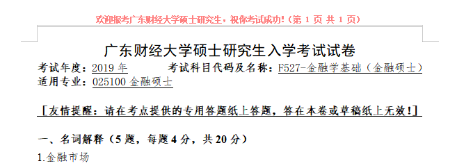 完整版请下载附件:2019年广东财经大学F527金融学基础(金融硕士)考研真题(复试)