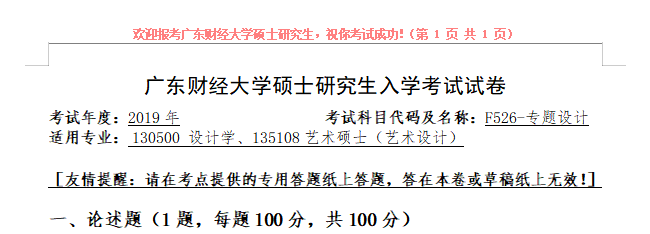 完整版请下载附件:2019年广东财经大学F526专题设计考研真题(复试)
