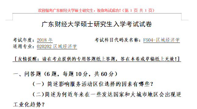 完整版请下载附件:2018年广东财经大学F504区域经济学考研真题(复试)