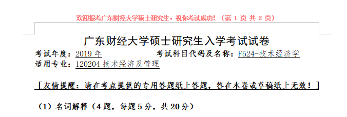 完整版请下载附件:2019年广东财经大学F524技术经济学考研真题(复试)