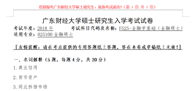完整版请下载附件:2018年广东财经大学F525金融学基础(金融硕士)考研真题(复试)