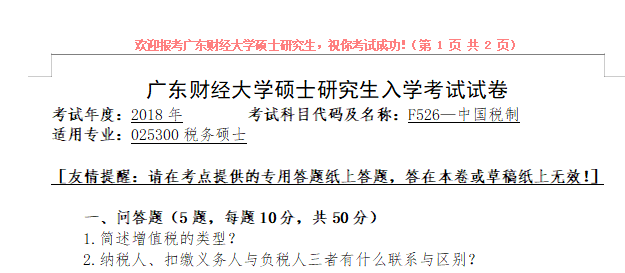 以上是聚创考研网为考生整理的"2018年广东财经大学F526中国税制考研真题(复试)"的相关考研信息,希望对大家考研备考有所帮助! 备考过程中如有疑问,也可以添加老师微信juchuang911进行咨询。