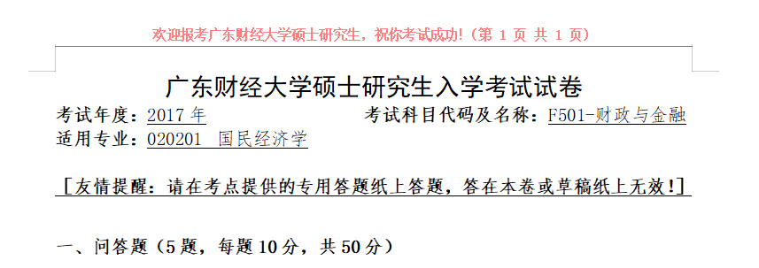 完整版请下载附件:2017年广东财经大学F501财政与金融考研真题(复试)
