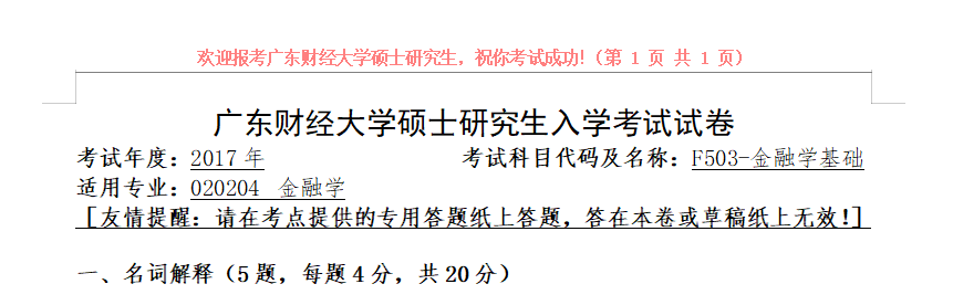 完整版请下载附件:2017年广东财经大学F503金融学基础考研真题(复试)