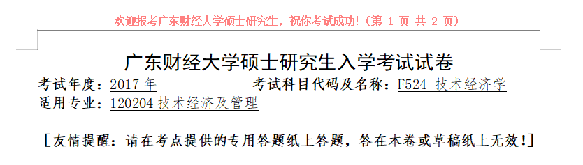 完整版请下载附件:2017年广东财经大学F523技术经济学考研真题(复试)
