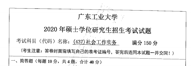 完整版请下载附件:2020年广东工业大学437社会工作实务考研真题(完整版)