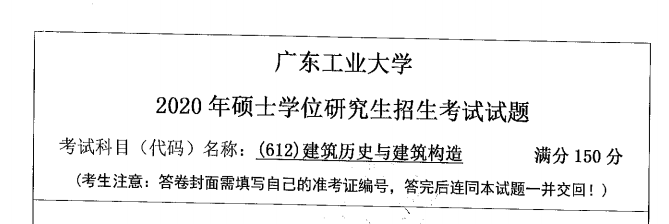 完整版请下载附件:2020年广东工业大学612建筑历史与建筑构造考研真题(完整版)