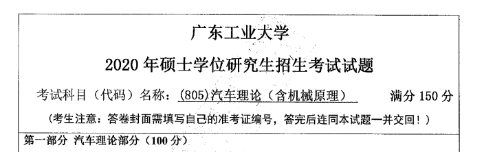 完整版请下载附件:2020年广东工业大学805汽车理论(含机械原理)考研真题(完整版)