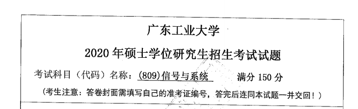 完整版请下载附件:2020年广东工业大学809信号与系统(自动化学院)考研真题(完整版)