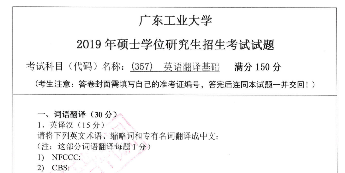 完整版请下载附件:2019年广东工业大学357英语翻译基础考研真题(完整版)
