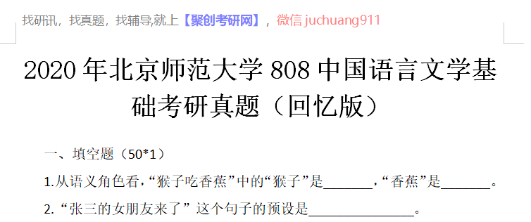 完整版请下载附件:2020年北京师范大学808中国语言文学基础考研真题(回忆版)