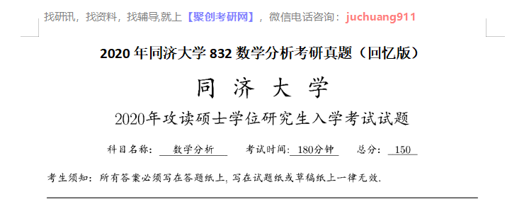 以上是聚创考研网为考生整理的"2020年同济大学832数学分析考研真题(回忆版)"的相关考研信息,希望对大家考研备考有所帮助! 备考过程中如有疑问,也可以添加老师微信juchuang911进行咨询。