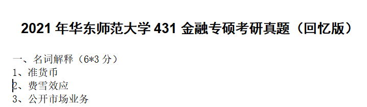 完整版请下载附件:2021年华东师范大学431金融专硕考研真题(回忆版)