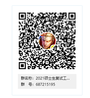 为便于通知,请各位考生在3月19日之前加到2021硕士生复试工作QQ群,群号:687215195,二维码见下图: