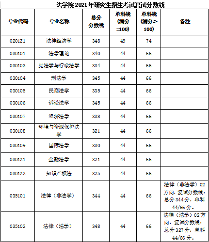 根据学校2021年硕士研究生招生考试考生进入复试基本成绩要求,结合我院学科专业特点和生源实际情况,经学院研究生招生工作领导小组研究决定,现公布我院各专业复试分数线: