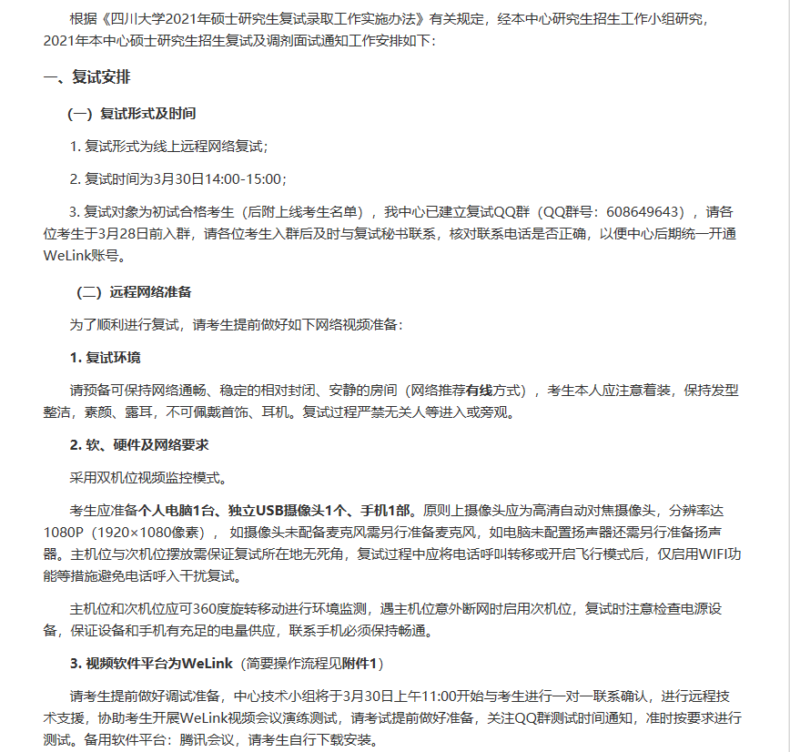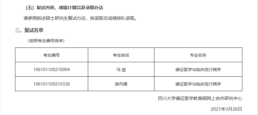 据悉,四川大学循证医学教育部网上合作研究中心2021年硕士研究生招生复试及调剂面试通知已公布,聚创四川大学考研网小编为大家整理如下: