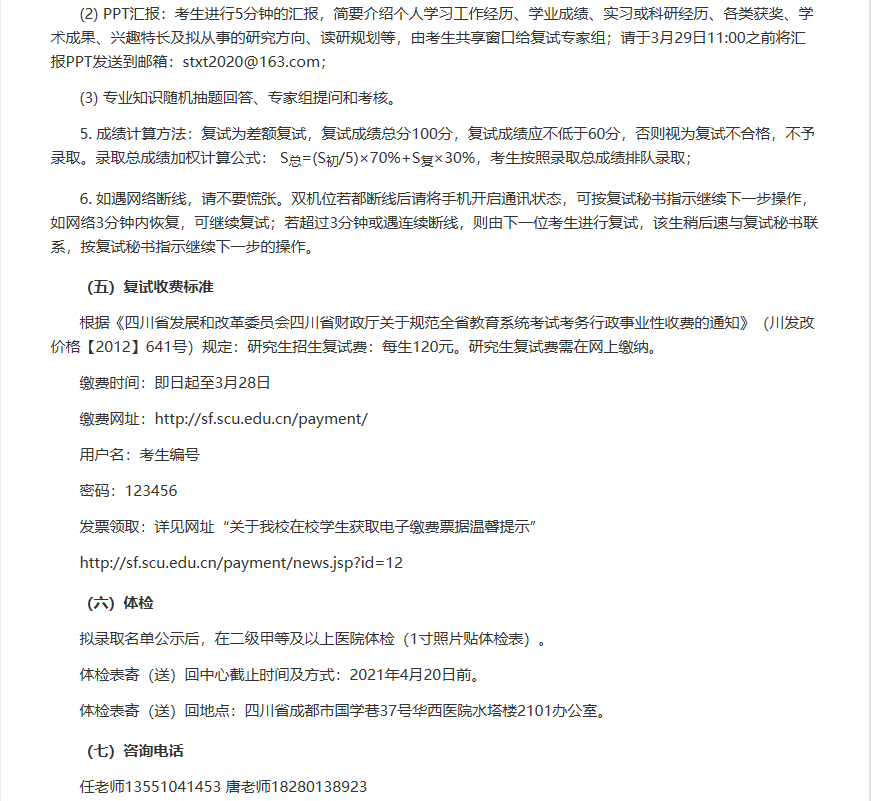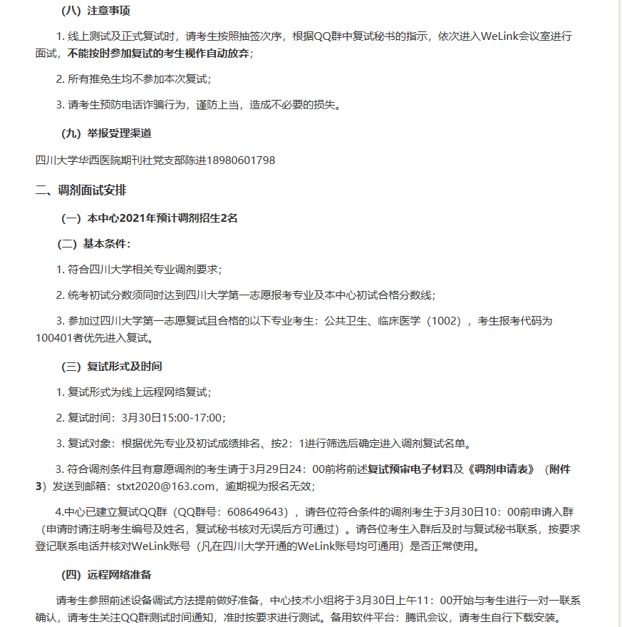 以上是聚创考研网为考生整理的"四川大学循证医学教育部网上合作研究中心2021年硕士研究生招生复试及调剂面试通知"的相关考研信息,希望对大家考研备考有所帮助!