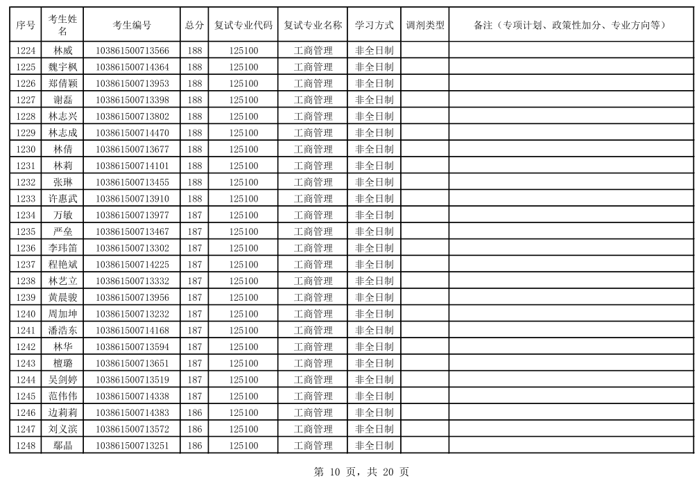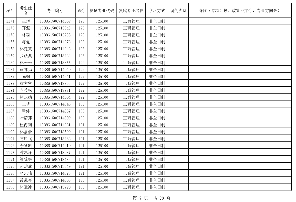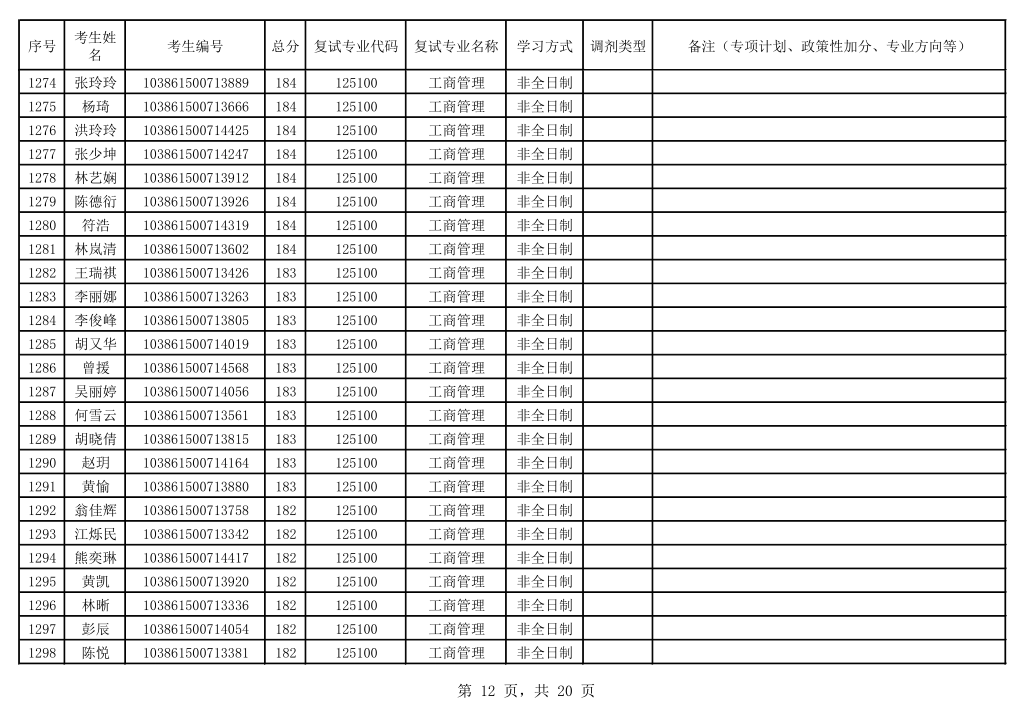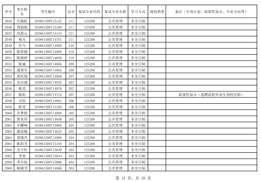2021年福州大学经济与管理学院参加复试考生名单(非全日制)