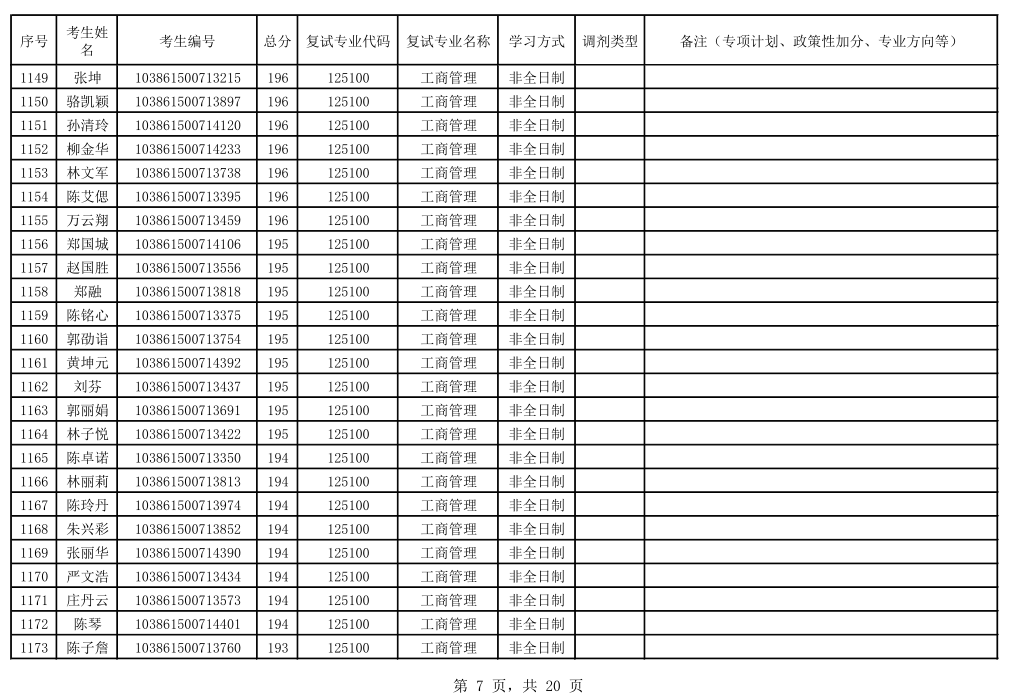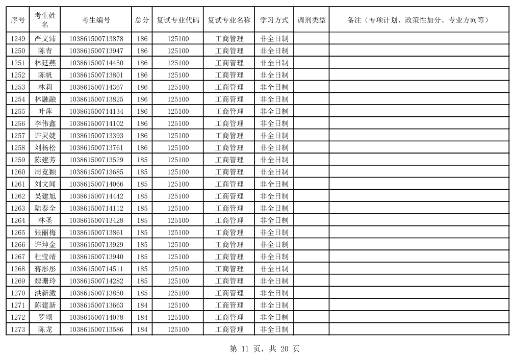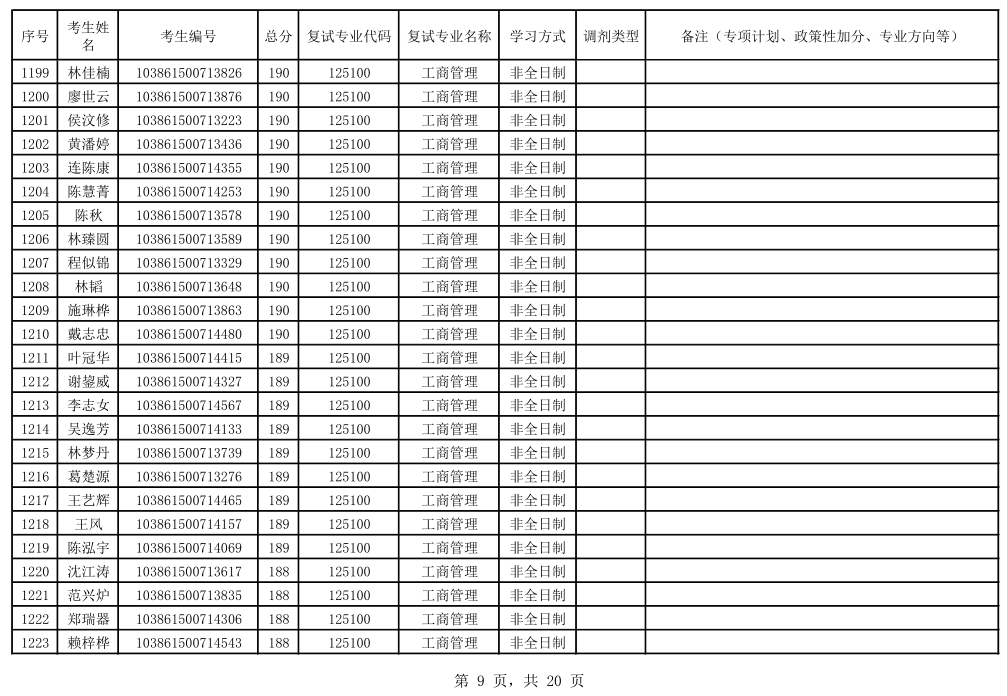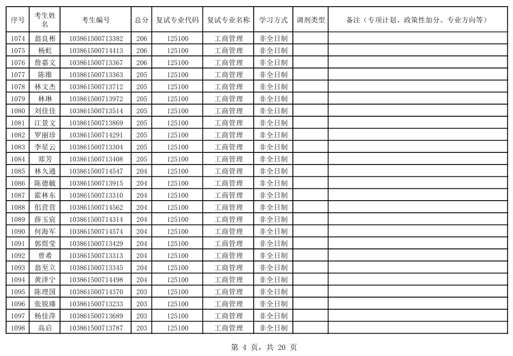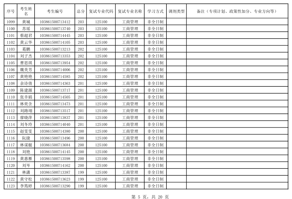 2021年福州大学经济与管理学院参加复试考生名单(非全日制)