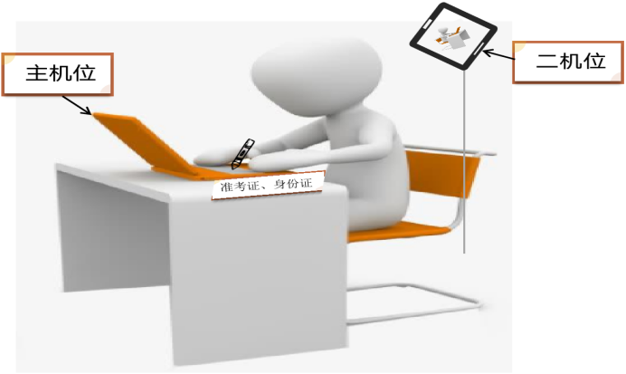 三、进入正式复试环节前,考生须按要求准备、安装、调试好相关硬件、软件,确保复试过程网络通畅,确保设备和软件能够正常使用,确保设备电量充足。应关闭移动设备通话、录屏、外放音乐、闹钟等各种可能影响面试的应用程序。考生端两台设备开启摄像头,一台设备摄像头对准考生本人,另一台设备摄像头从考生后方以45°角、在1.5米处拍摄(该设备须关闭音频,防止回音;如用手机作为辅机位,须将手机设置成飞行模式,连接WiFi),并保证考生端考试屏幕能清晰地被复试专家组看到。